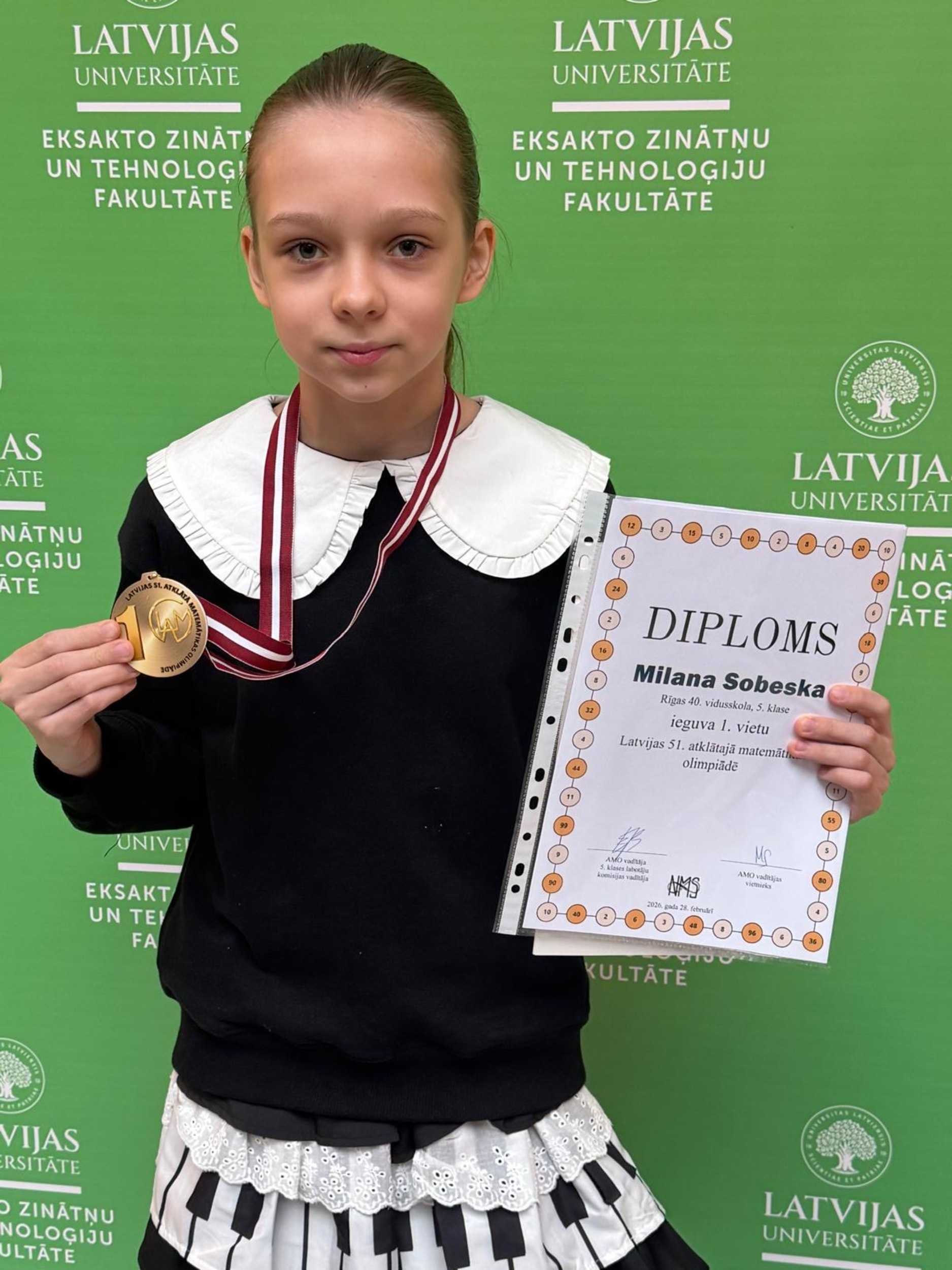 Apsveicam 5. b klases skolnieci Milanu Sobesku par iegūto 1.vietu Latvijas 51. atklātajā matemātikas olimpiādē!